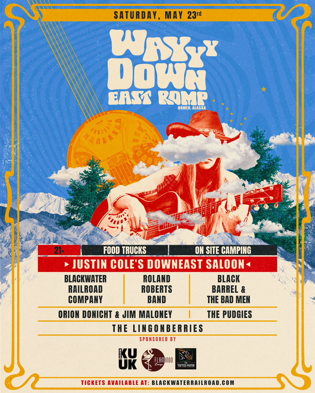 Wayyy Down East Romp is a one-day festival at the historic Down East Saloon in Homer, AK! Happening Saturday, May 23, this year's lineup features:
